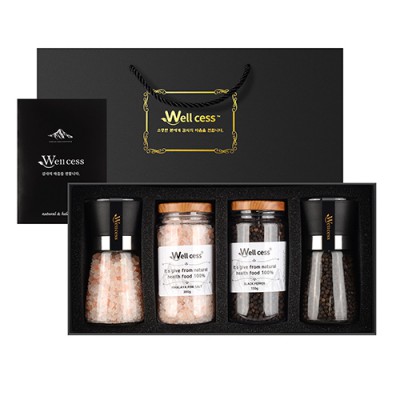 - 웰세스 WG-204 히말라야 핑크솔트 블랙페퍼 그라인더 선물세트[핑크솔트 굵은입자 200G, 블랙페퍼 100G, 핑크솔트 리필 300G, 블랙페퍼 리필 150G]