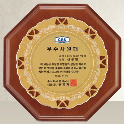 - 회사 우수사원패 상패 제작 감사패 공로패
