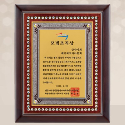 - 민주노총 모범조직상 제작 위촉패 공로패 감사패