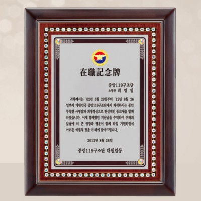- 중앙119구조단 재직기념패 제작 위촉패 감사패 공로패