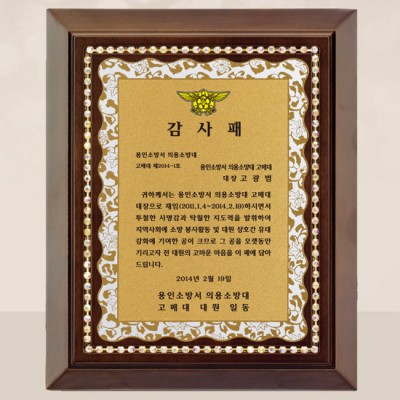 - 의용소방대 감사패 공로패 위촉패 제작