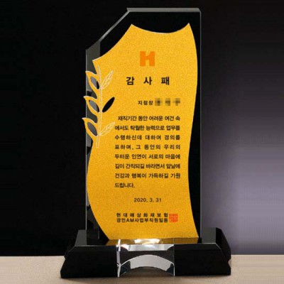 - 현대해상화재보험 감사패 퇴직 제작 블랙 크리스탈 메탈패