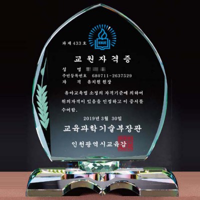 - 교육과학기술부장관 교원자격증 표창패 부모님감사패 공로패