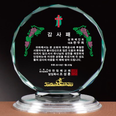 - 기독교 대천침예교회 감사패 제작 재직기념패 퇴직 기념패